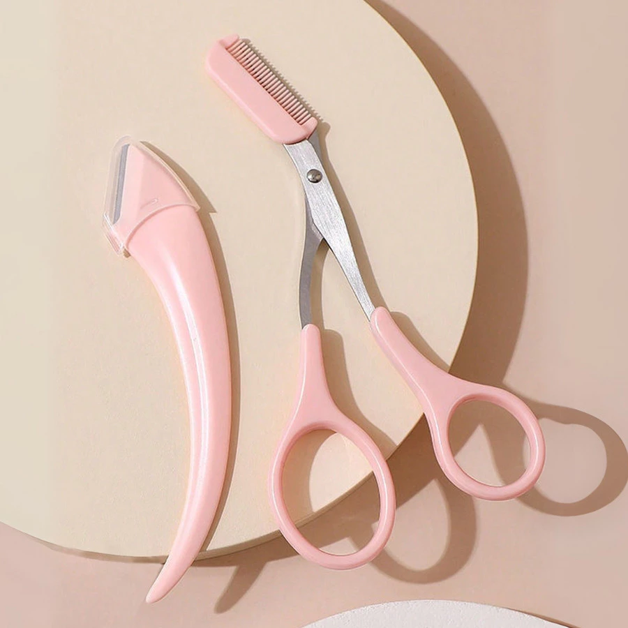 Kit prático com tesourinha com pente e navalha para sobrancelha, ideal para aparar e modelar pelos faciais com precisão